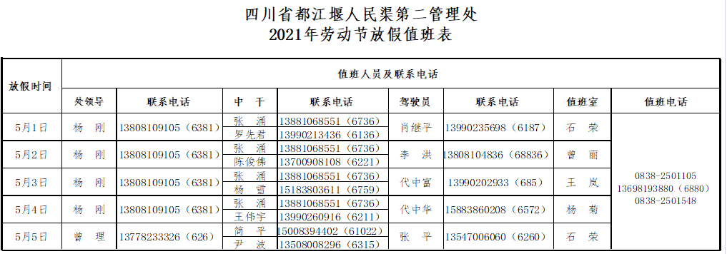 (二)认真执行《四川省都江堰人民渠第二管理处机关值班工作制度》,履行好带班、值班责任,按规范处理带班、值班期间发生的所有工作事项,完成各项工作任务,及时对工作情况进行报告、报备。
